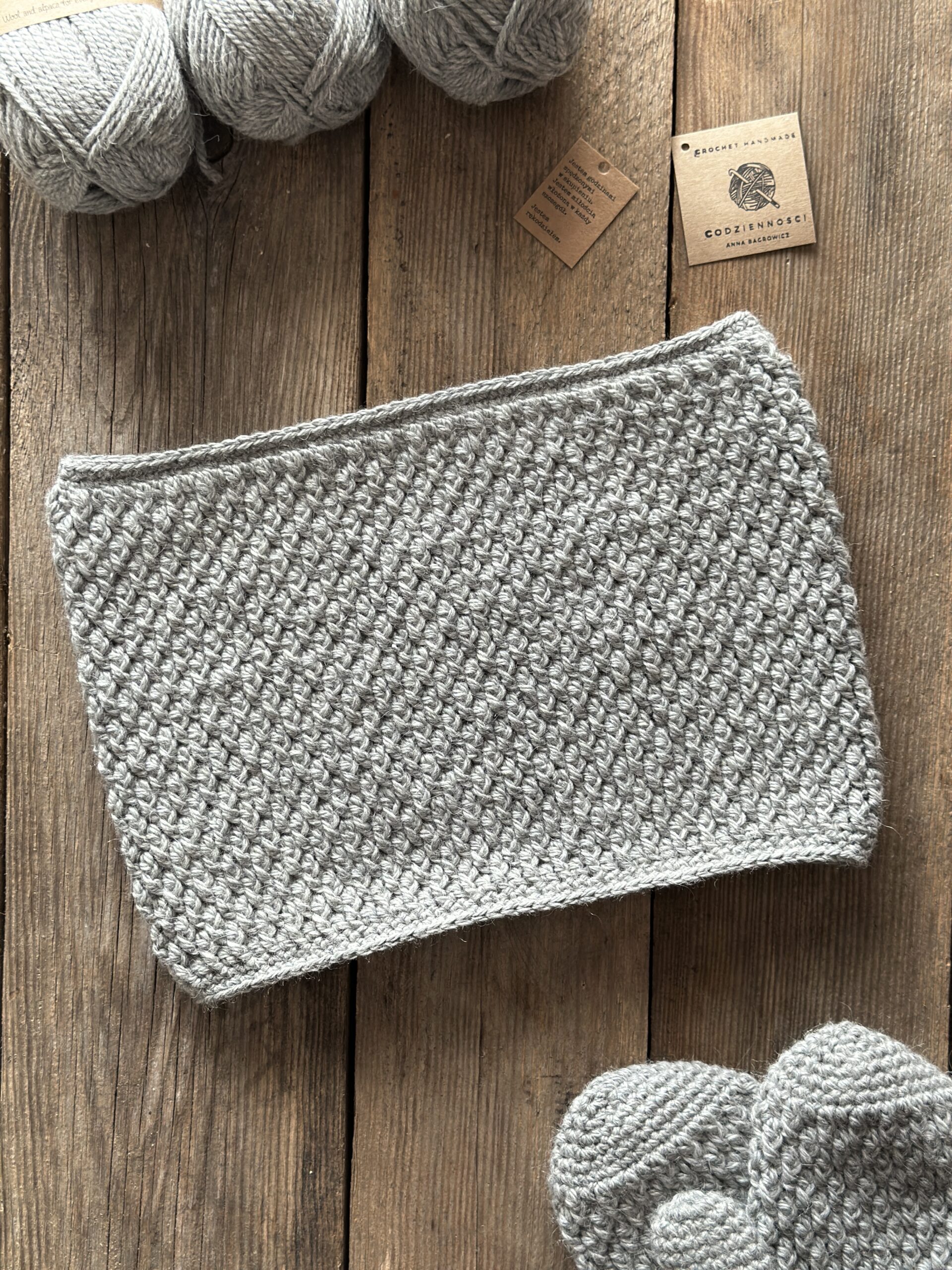 Szary komin na szyję – niegryzący, ciepły.