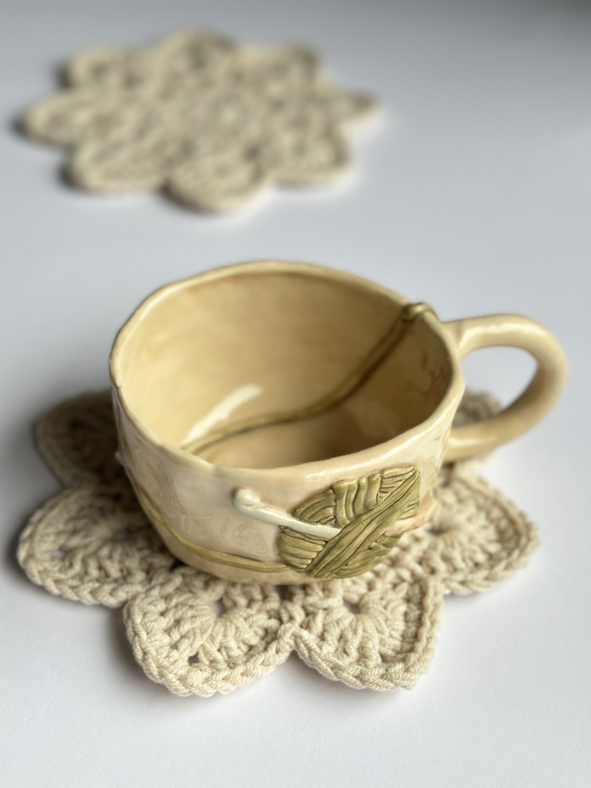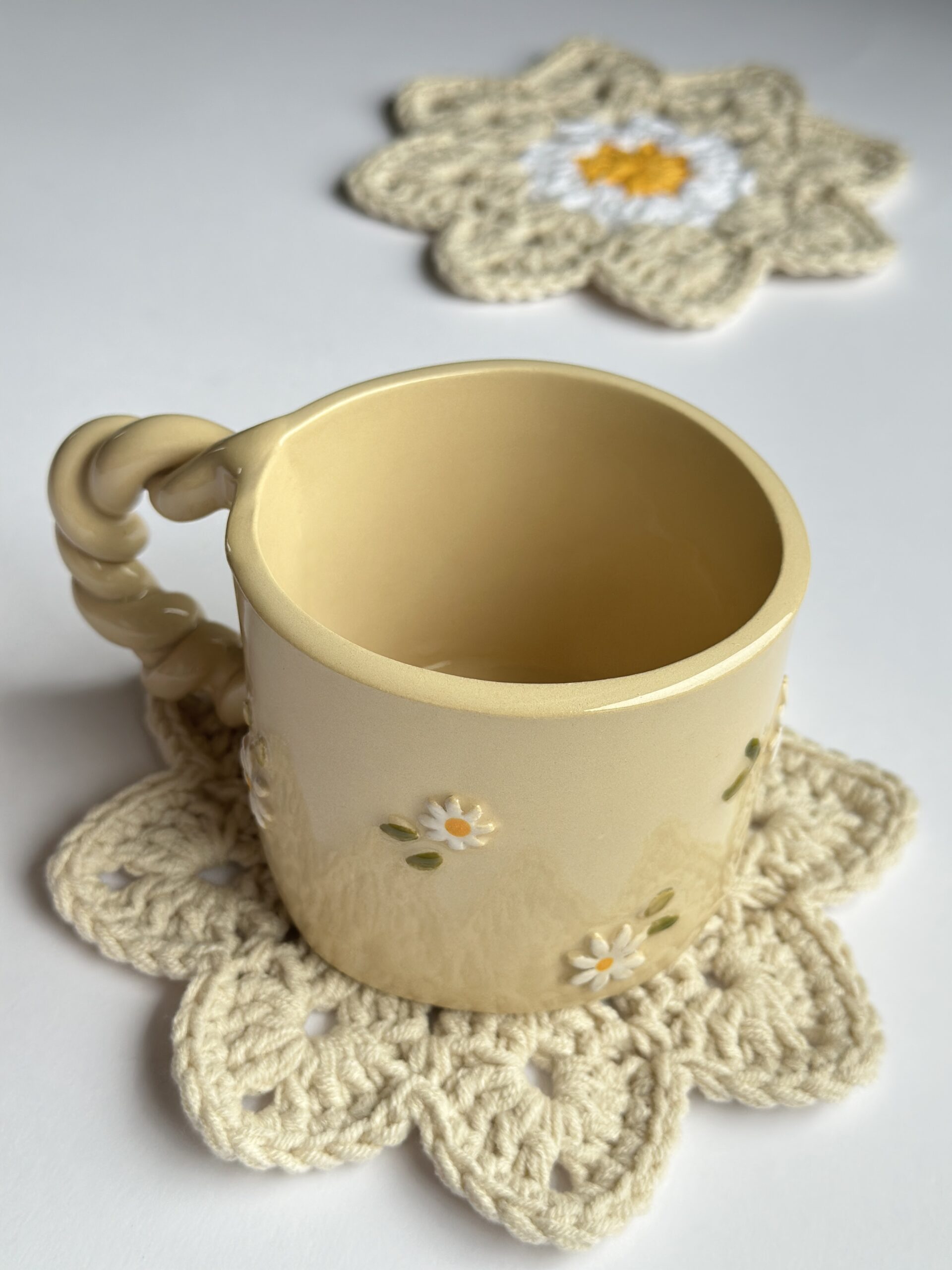 Szydełkowa podkładka pod kubek handmade – kwiatowa, dekoracja stołu