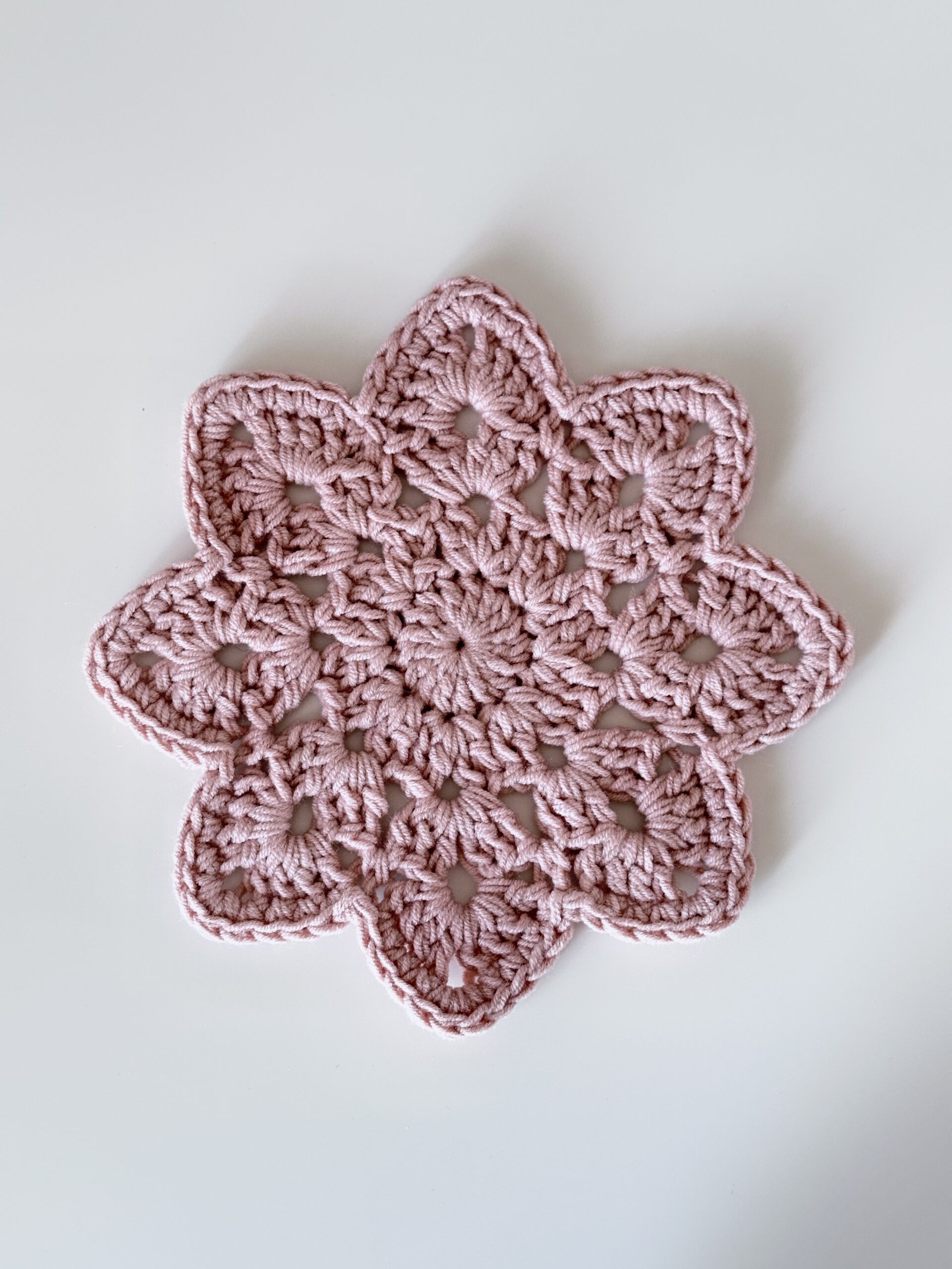 Szydełkowa podkładka pod kubek – zgaszony róż