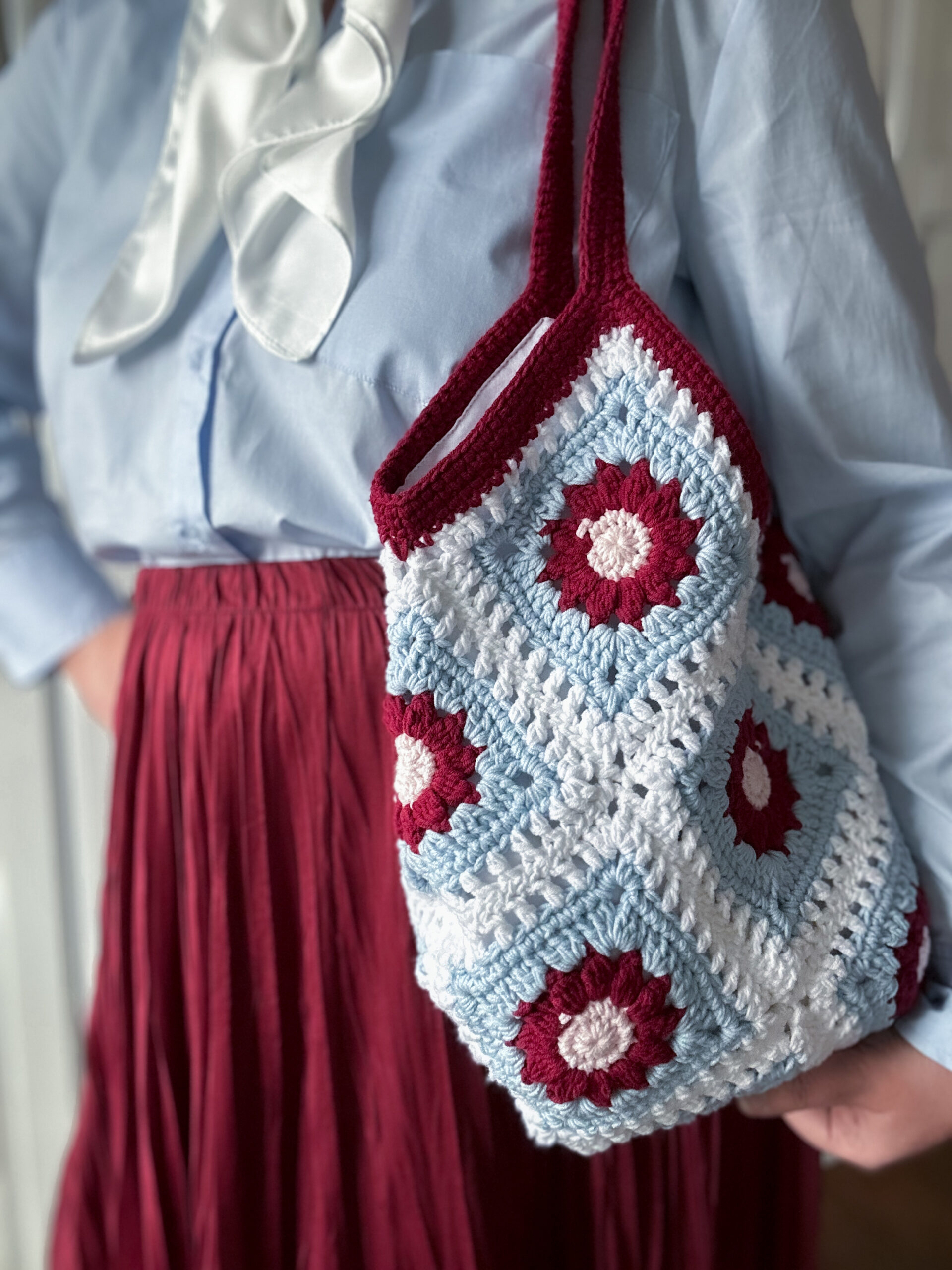 – Wytrzymały i funkcjonalny materiał – Używam włóczki bawełniano-akrylowej, która jest odporna na mechacenie i doskonale sprawdza się przy codziennym użytkowaniu.