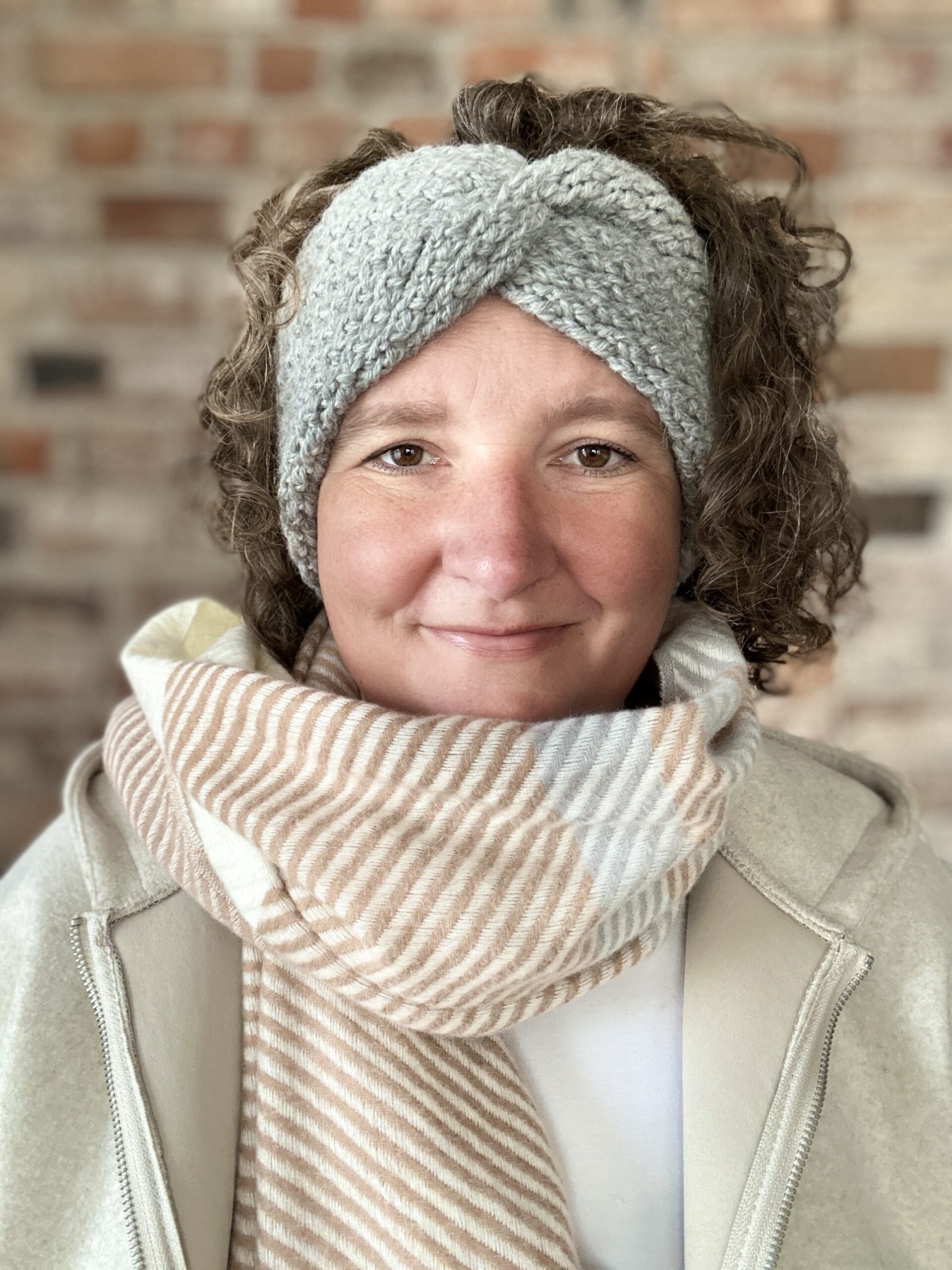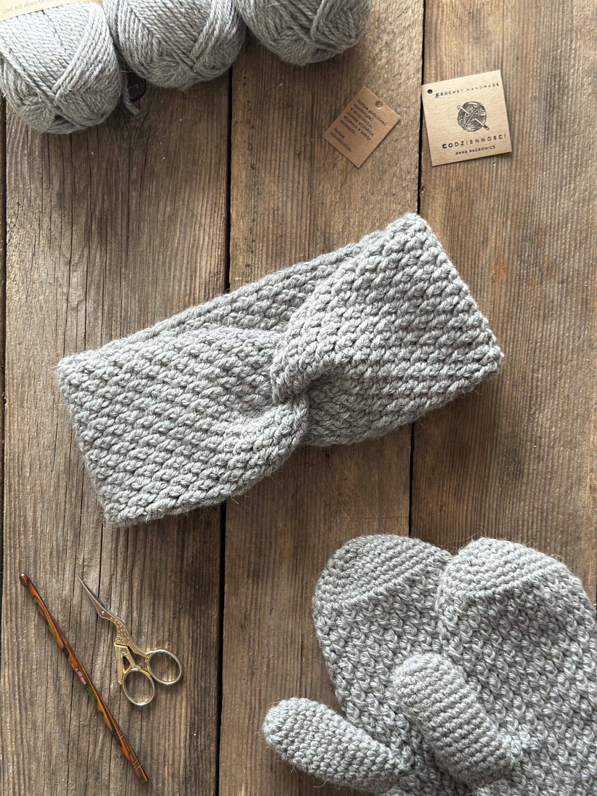 🧣 Szara opaska na uszy – niegryząca, ciepła.