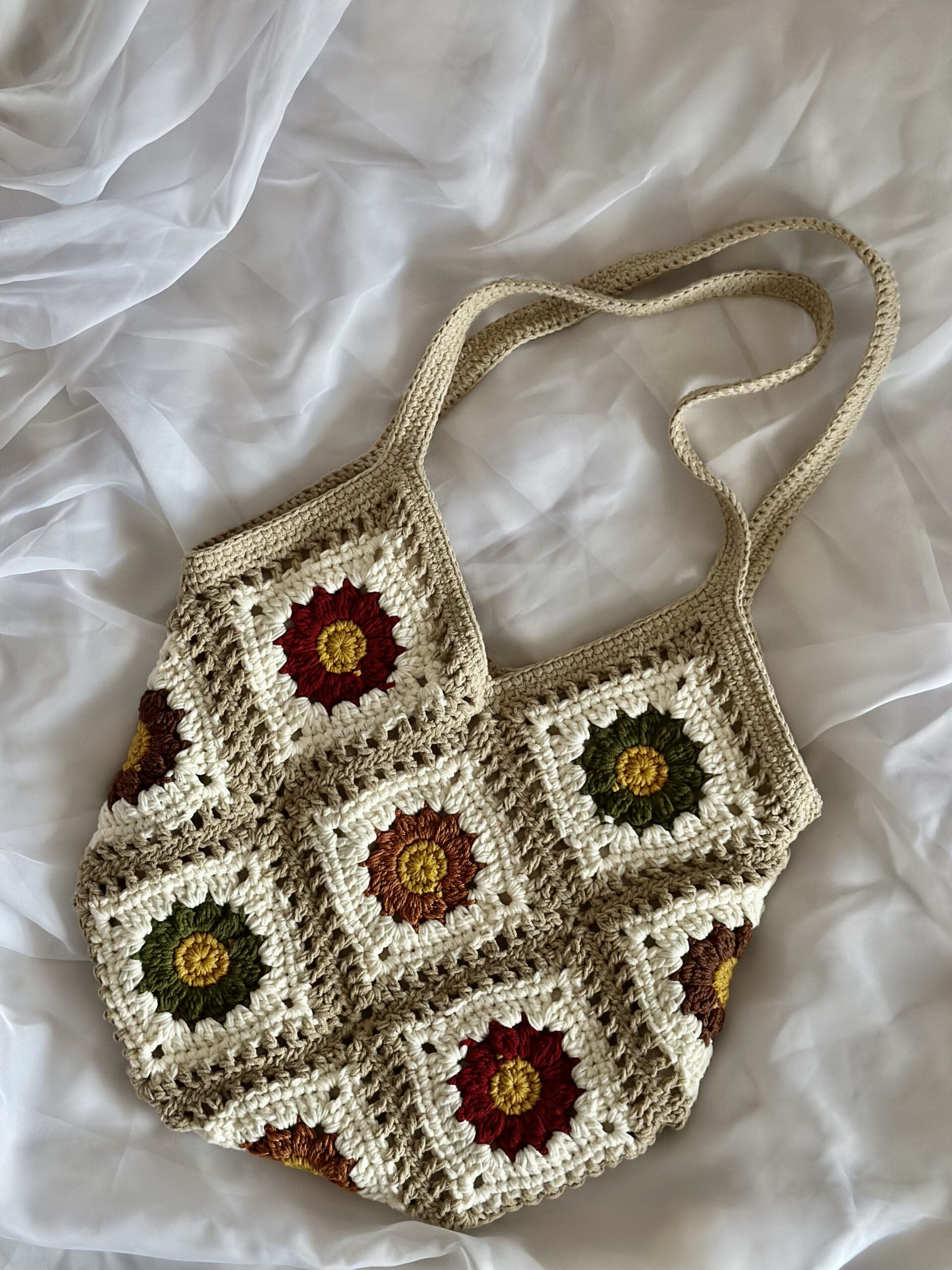 Poznaj Torebkę Aura – coś więcej niż zwykły dodatek. To Twój osobisty amulet, który emanuje dobrą energią i ciepłem, otulając Cię niczym delikatny jesienny promień słońca. Stworzona ręcznie, z pasją i precyzją, z kultowych kwadratów „granny square”, ta torba jest prawdziwym dziełem sztuki, które ożywi każdą Twoją stylizację.